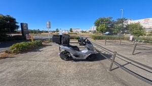 PCX125でフードデリバリーをしている筆者が、リアボックス・配達バッグ・小物類の装備を紹介。タンデムシート固定の方法や、ボックス内の工夫もまとめています。
