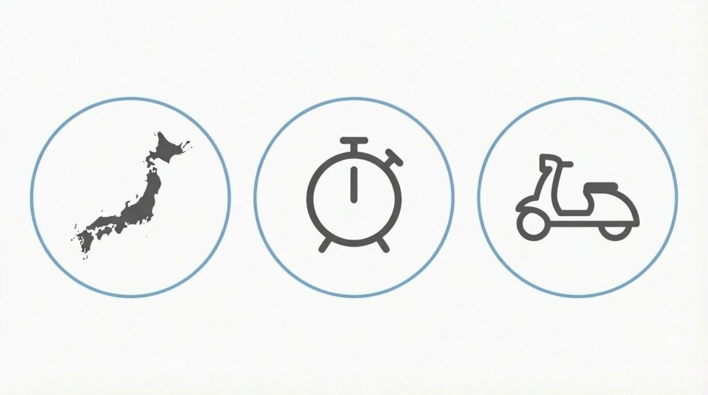 特にタイヤと灯火類は、日常的に乗っていると劣化に気づきにくい部分です。配達では普段より走行距離が増えるので、始める前に一度しっかり確認しておくと安心です。