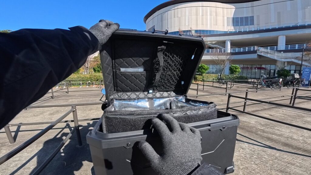 保冷バッグを中に入れて使うなら55L、ボックス単体で使うなら65Lがバランスが良いです。80L以上になると横幅が広がって取り回しに影響が出てくるので、自分の車体や配達スタイルに合ったサイズを選ぶのがポイントです。