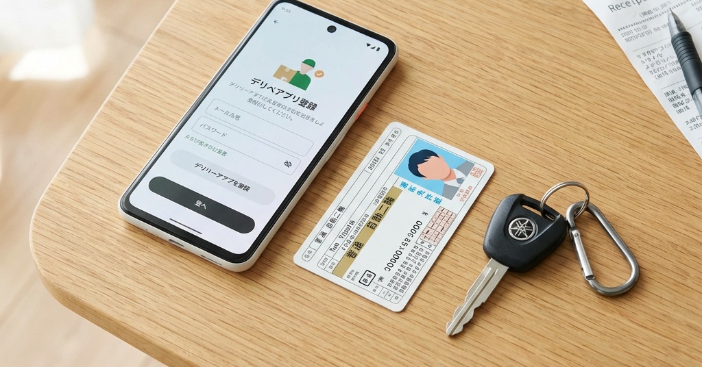 面接なし、来店不要。Webから登録が完結します。書類を提出して審査が通れば、すぐに配達を始められます。